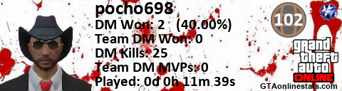 <a href="http://GTAonlinestats.com/showplayer/pocho698"><img src="http://GTAonlinestats.com/dmsignature/pocho698/sig.png" alt="pocho698" border="0" /></a>