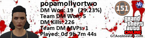 [URL=http://GTAonlinestats.com/showplayer/popamollyortwo][IMG]http://GTAonlinestats.com/dmsignature/popamollyortwo/sig.png[/IMG][/URL]