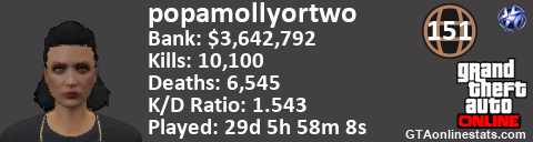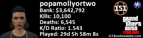 [URL=http://GTAonlinestats.com/showplayer/popamollyortwo][IMG]http://GTAonlinestats.com/randomsignature/popamollyortwo/sig.png[/IMG][/URL]