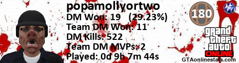 [URL=http://GTAonlinestats.com/showplayer/popamollyortwo/2][IMG]http://GTAonlinestats.com/signature/popamollyortwo/2/sig.png[/IMG][/URL]