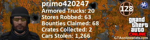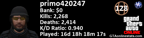 <a href="http://GTAonlinestats.com/showplayer/primo420247"><img src="http://GTAonlinestats.com/signature/primo420247/sig.png" alt="primo420247" border="0" /></a>