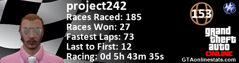 [URL=http://GTAonlinestats.com/showplayer/project242][IMG]http://GTAonlinestats.com/racesignature/project242/sig.png[/IMG][/URL]