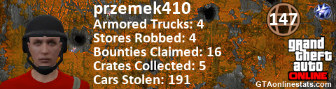 <a href="http://GTAonlinestats.com/showplayer/przemek410"><img src="http://GTAonlinestats.com/randomsignature/przemek410/sig.png" alt="Przemek410" border="0" /></a>