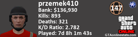 [URL=http://GTAonlinestats.com/showplayer/przemek410][IMG]http://GTAonlinestats.com/randomsignature/przemek410/sig.png[/IMG][/URL]