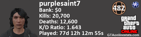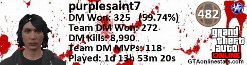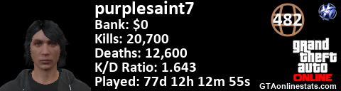 [URL=http://GTAonlinestats.com/showplayer/purplesaint7][IMG]http://GTAonlinestats.com/dmsignature/purplesaint7/sig.png[/IMG][/URL]