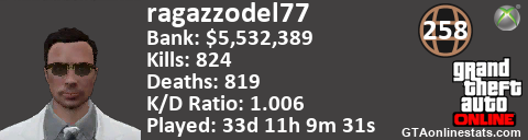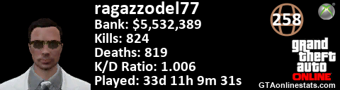 <a href="http://GTAonlinestats.com/showplayer/ragazzodel77"><img src="http://GTAonlinestats.com/randomsignature/ragazzodel77/sig.png" alt="ragazzodel77" border="0" /></a>