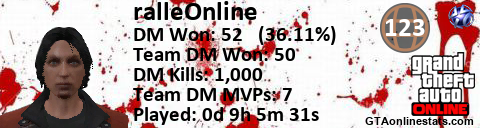 [URL=http://GTAonlinestats.com/showplayer/ralleOnline][IMG]http://GTAonlinestats.com/dmsignature/ralleOnline/sig.png[/IMG][/URL]