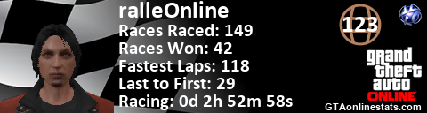 <a href="http://GTAonlinestats.com/showplayer/ralleOnline"><img src="http://GTAonlinestats.com/racesignature/ralleOnline/sig.png" alt="ralleOnline" border="0" /></a>
