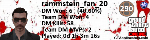 [URL=http://GTAonlinestats.com/showplayer/rammstein_fan_20][IMG]http://GTAonlinestats.com/dmsignature/rammstein_fan_20/sig.png[/IMG][/URL]