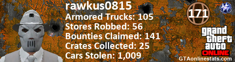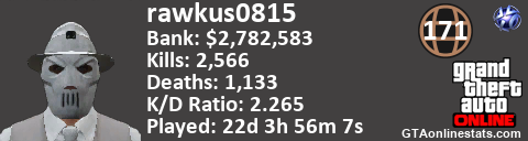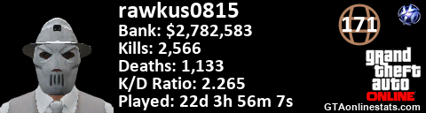 [URL=http://GTAonlinestats.com/showplayer/rawkus0815][IMG]http://GTAonlinestats.com/signature/rawkus0815/sig.png[/IMG][/URL]