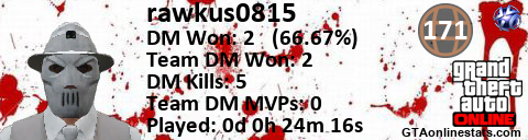 [URL=http://GTAonlinestats.com/showplayer/rawkus0815][IMG]http://GTAonlinestats.com/dmsignature/rawkus0815/sig.png[/IMG][/URL]