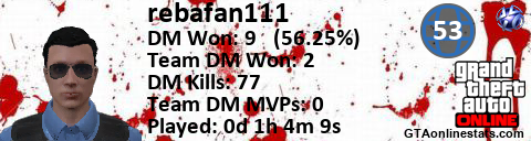 <a href="http://GTAonlinestats.com/showplayer/rebafan111"><img src="http://GTAonlinestats.com/dmsignature/rebafan111/sig.png" alt="rebafan111" border="0" /></a>