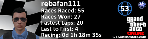 <a href="http://GTAonlinestats.com/showplayer/rebafan111"><img src="http://GTAonlinestats.com/racesignature/rebafan111/sig.png" alt="rebafan111" border="0" /></a>