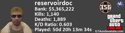 <a href="http://GTAonlinestats.com/showplayer/reservoirdoc"><img src="http://GTAonlinestats.com/dmsignature/reservoirdoc/sig.png" alt="reservoirdoc" border="0" /></a>