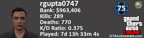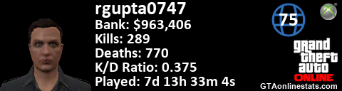 <a href="http://GTAonlinestats.com/showplayer/rgupta0747"><img src="http://GTAonlinestats.com/signature/rgupta0747/sig.png" alt="rgupta0747" border="0" /></a>
