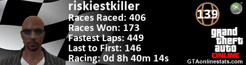 [URL=http://GTAonlinestats.com/showplayer/riskiestkiller][IMG]http://GTAonlinestats.com/racesignature/riskiestkiller/sig.png[/IMG][/URL]