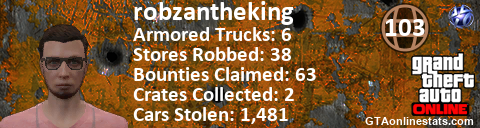 [URL=http://GTAonlinestats.com/showplayer/robzantheking][IMG]http://GTAonlinestats.com/crimesignature/robzantheking/sig.png[/IMG][/URL]