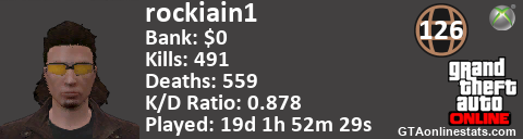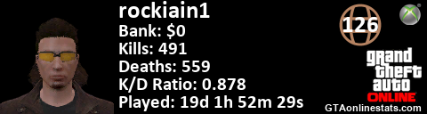 <a href="http://GTAonlinestats.com/showplayer/rockiain1"><img src="http://GTAonlinestats.com/signature/rockiain1/sig.png" alt="rockiain1" border="0" /></a>