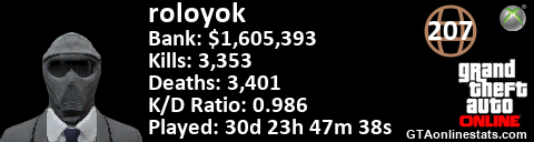 <a href="http://GTAonlinestats.com/showplayer/roloyok"><img src="http://GTAonlinestats.com/randomsignature/roloyok/sig.png" alt="roloyok" border="0" /></a>