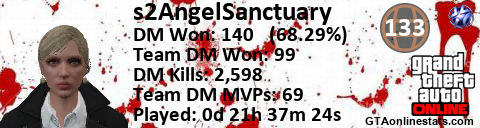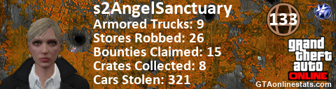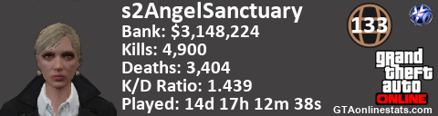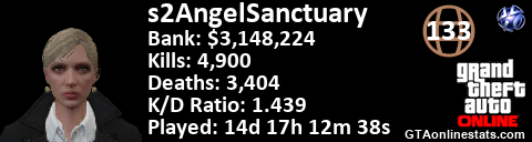 [URL=http://GTAonlinestats.com/showplayer/s2AngelSanctuary][IMG]http://GTAonlinestats.com/signature/s2AngelSanctuary/sig.png[/IMG][/URL]