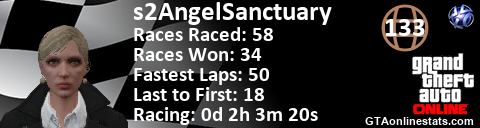 <a href="http://GTAonlinestats.com/showplayer/s2AngelSanctuary"><img src="http://GTAonlinestats.com/racesignature/s2AngelSanctuary/sig.png" alt="s2AngelSanctuary" border="0" /></a>