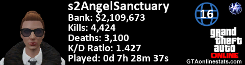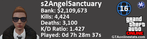 [URL=http://GTAonlinestats.com/showplayer/s2AngelSanctuary/2][IMG]http://GTAonlinestats.com/signature/s2AngelSanctuary/2/sig.png[/IMG][/URL]