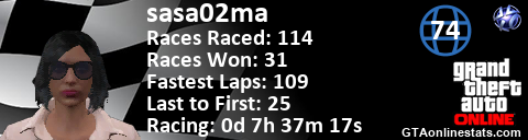 [URL=http://GTAonlinestats.com/showplayer/sasa02ma][IMG]http://GTAonlinestats.com/racesignature/sasa02ma/sig.png[/IMG][/URL]