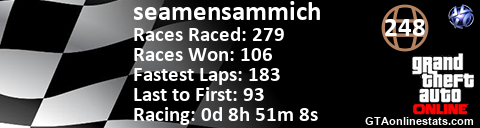 <a href="http://GTAonlinestats.com/showplayer/seamensammich"><img src="http://GTAonlinestats.com/racesignature/seamensammich/sig.png" alt="seamensammich" border="0" /></a>