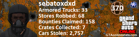 <a href="http://GTAonlinestats.com/showplayer/sebatoxdxd"><img src="http://GTAonlinestats.com/randomsignature/sebatoxdxd/sig.png" alt="sebatoxdxd" border="0" /></a>
