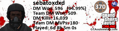 <a href="http://GTAonlinestats.com/showplayer/sebatoxdxd"><img src="http://GTAonlinestats.com/dmsignature/sebatoxdxd/sig.png" alt="sebatoxdxd" border="0" /></a>