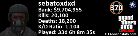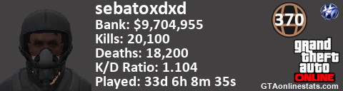 [URL=http://GTAonlinestats.com/showplayer/sebatoxdxd][IMG]http://GTAonlinestats.com/signature/sebatoxdxd/sig.png[/IMG][/URL]