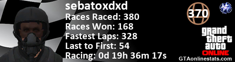 <a href="http://GTAonlinestats.com/showplayer/sebatoxdxd"><img src="http://GTAonlinestats.com/racesignature/sebatoxdxd/sig.png" alt="sebatoxdxd" border="0" /></a>