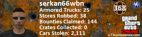 <a href="http://GTAonlinestats.com/showplayer/serkan66wbn"><img src="http://GTAonlinestats.com/crimesignature/serkan66wbn/sig.png" alt="serkan66wbn" border="0" /></a>