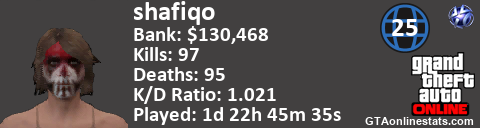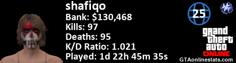 <a href="http://GTAonlinestats.com/showplayer/shafiqo"><img src="http://GTAonlinestats.com/randomsignature/shafiqo/sig.png" alt="shafiqo" border="0" /></a>