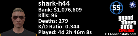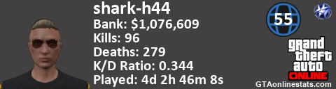 <a href="http://GTAonlinestats.com/showplayer/shark-h44"><img src="http://GTAonlinestats.com/randomsignature/shark-h44/sig.png" alt="shark-h44" border="0" /></a>