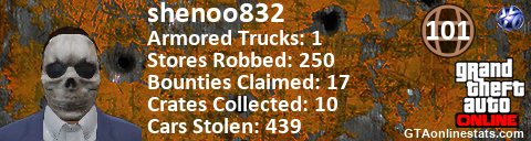 <a href="http://GTAonlinestats.com/showplayer/shenoo832"><img src="http://GTAonlinestats.com/crimesignature/shenoo832/sig.png" alt="Shenoo832" border="0" /></a>
