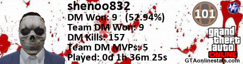 <a href="http://GTAonlinestats.com/showplayer/shenoo832"><img src="http://GTAonlinestats.com/dmsignature/shenoo832/sig.png" alt="Shenoo832" border="0" /></a>