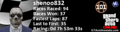 [URL=http://GTAonlinestats.com/showplayer/shenoo832][IMG]http://GTAonlinestats.com/racesignature/shenoo832/sig.png[/IMG][/URL]