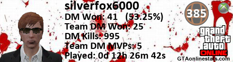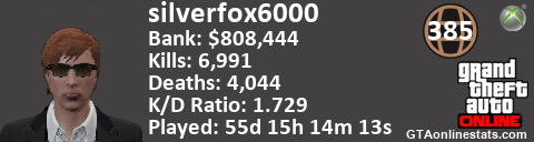 [URL=http://GTAonlinestats.com/showplayer/silverfox6000][IMG]http://GTAonlinestats.com/dmsignature/silverfox6000/sig.png[/IMG][/URL]
