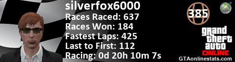 [URL=http://GTAonlinestats.com/showplayer/silverfox6000][IMG]http://GTAonlinestats.com/racesignature/silverfox6000/sig.png[/IMG][/URL]