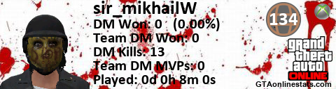 [URL=http://GTAonlinestats.com/showplayer/sir_mikhailW][IMG]http://GTAonlinestats.com/dmsignature/sir_mikhailW/sig.png[/IMG][/URL]