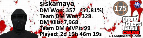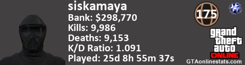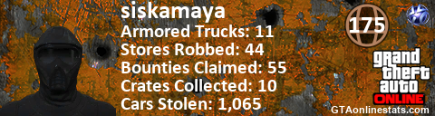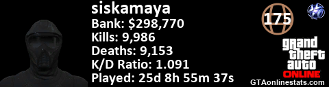 [URL=http://GTAonlinestats.com/showplayer/siskamaya][IMG]http://GTAonlinestats.com/dmsignature/siskamaya/sig.png[/IMG][/URL]