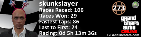 [URL=http://GTAonlinestats.com/showplayer/skunkslayer][IMG]http://GTAonlinestats.com/racesignature/skunkslayer/sig.png[/IMG][/URL]