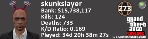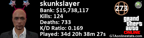 [URL=http://GTAonlinestats.com/showplayer/skunkslayer][IMG]http://GTAonlinestats.com/randomsignature/skunkslayer/sig.png[/IMG][/URL]