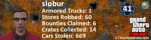 [URL=http://GTAonlinestats.com/showplayer/slobur][IMG]http://GTAonlinestats.com/signature/slobur/sig.png[/IMG][/URL]