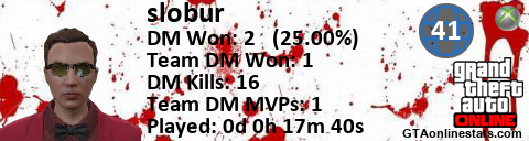 [URL=http://GTAonlinestats.com/showplayer/slobur][IMG]http://GTAonlinestats.com/dmsignature/slobur/sig.png[/IMG][/URL]