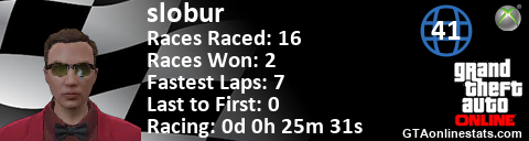 [URL=http://GTAonlinestats.com/showplayer/slobur][IMG]http://GTAonlinestats.com/racesignature/slobur/sig.png[/IMG][/URL]