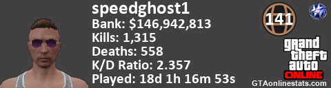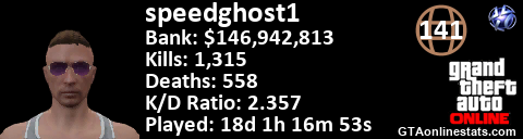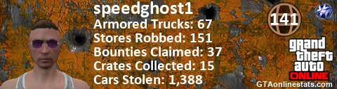 [URL=http://GTAonlinestats.com/showplayer/speedghost1][IMG]http://GTAonlinestats.com/signature/speedghost1/sig.png[/IMG][/URL]
