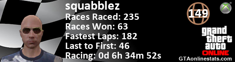 <a href="http://GTAonlinestats.com/showplayer/squabblez"><img src="http://GTAonlinestats.com/racesignature/squabblez/sig.png" alt="squabblez" border="0" /></a>