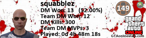 <a href="http://GTAonlinestats.com/showplayer/squabblez"><img src="http://GTAonlinestats.com/dmsignature/squabblez/sig.png" alt="squabblez" border="0" /></a>